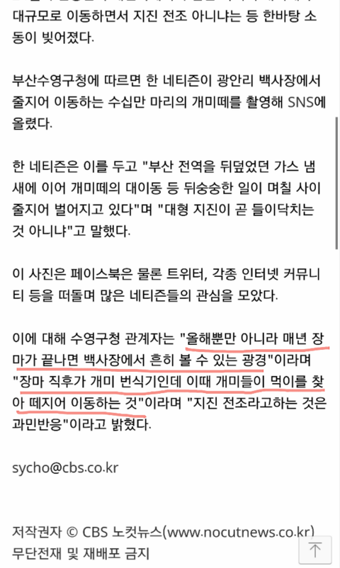 개미떼이동이 지진전조 현상도 아닐 뿐더러 지진 전조현상이었다 해도 이미 지진이 발생했어야 함