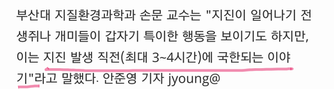 그리고 개미나 동물들이 지진 전에 이상한 행동을 하는 지진전조가 실제로 존재하긴 하지만, 그런 전조현상은 지진발생 3~4시간전에만 일어나는 일임