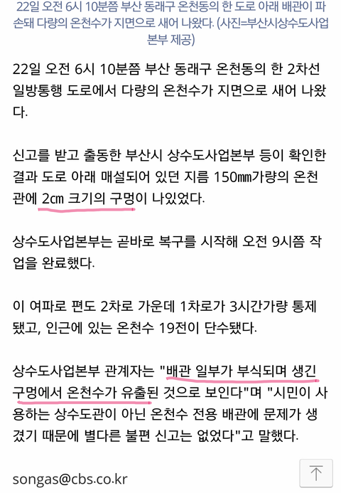 폭발한 배관은 일반인들이 쓰는 배관이 아니라 온천수 전용 배관이어서 라고함.