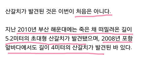 산갈치든 돗돔이든 이번에 최초로 잡힌게 아니고 몇년 전에도 잡힌 사례가 많다는게 공통점임