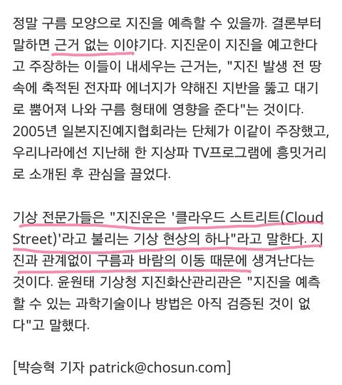 이때까지 지진 발생 전 지진운을 봤다는 사례가 몇번 있었다고 하는데