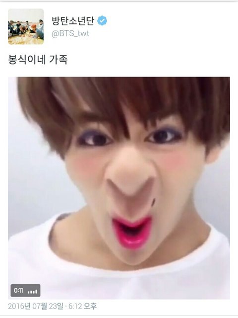 어제 태형이가 짹에 올린 봉식이네 가족ㅋㅋㅋㅋㅋㅋㅋㅋ 하루종일 이 영상이 머릿속에서 맴돌아... 우울할 때 아니 하루에 한 번 이상은 보자..★