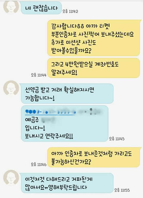 그러니까 이사람이 인증샷이라면서 표가리고 종이에다가 자기 핸드폰번호써서 사진보여주길래 미션샷보여달라니까 입금하면 보여준다네