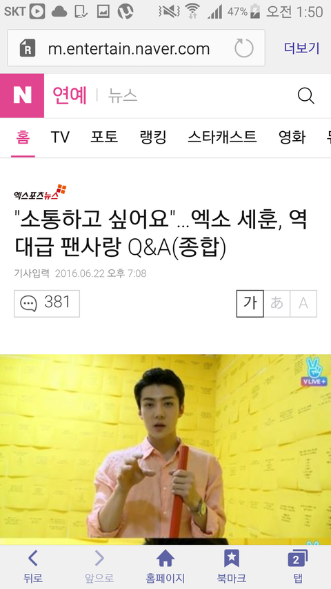 팬사랑없다고 ㅈㄹ한냔들...나오시조.......세훈이 체고만세