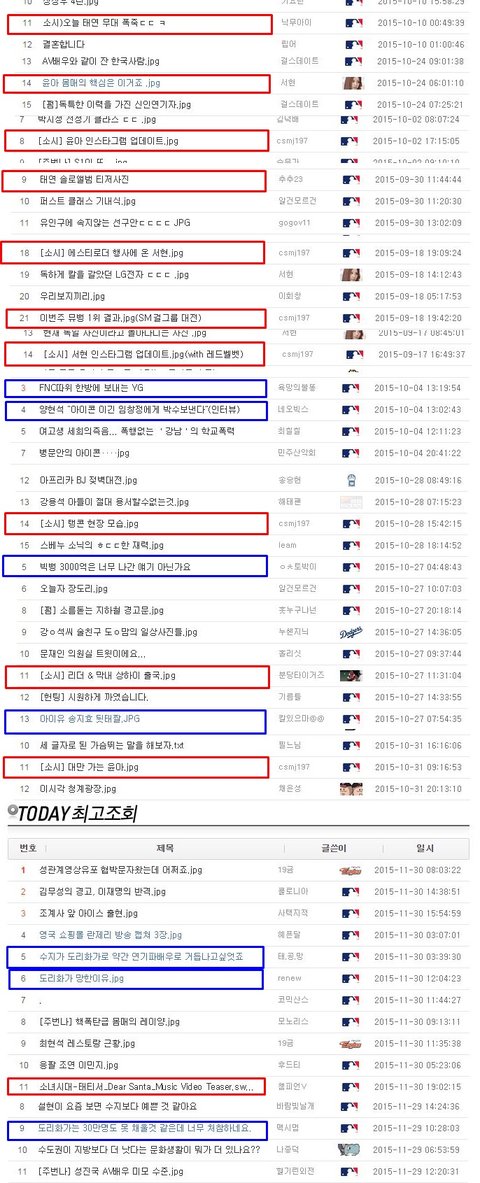 예전부터 아이유 수지 최근에는 트와이스 까는글들 그동안 조회수 몇시간만에 5만씩 올라가고 그래서
