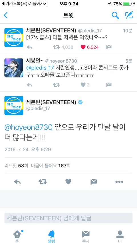 어제 멘파할때인데 내가 고3이라 그런가 저런말에 설렘.....그냥 최승철이라 설렌건가...내가 답멘 받은건 아니지만 설레서 캡쳐까지함ㅜㅜ