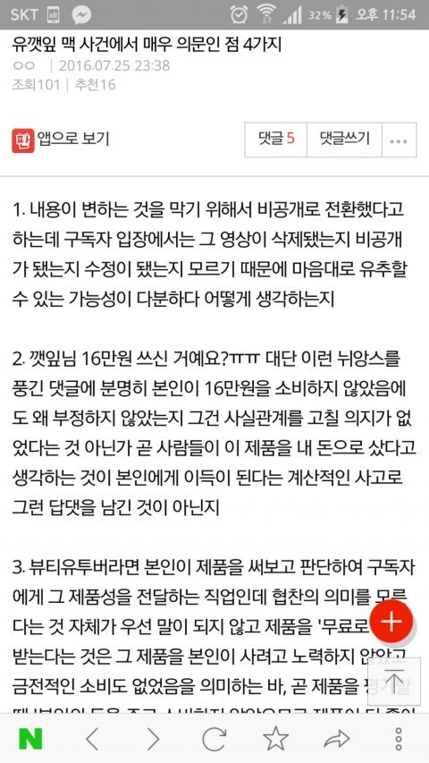 유깻잎 님 해명 부탁드려요