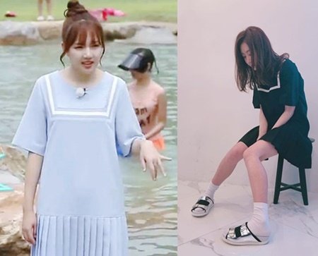 걸스데이 민아와 여친 은하는 비슷한 세일러 디자인의 원피스로