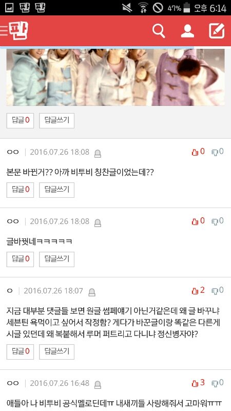 원래 ㅂㅌㅂ내용이였던 글 썸페글이랑 똑같이 바꿈 갑자기. 저 두글 글쓴이 같은 글쓴이 일 듯. 세븐틴 매일 까는 ㅇㄱㄹ 있잖아