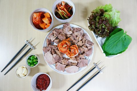친정엄마가 파김치를 담궈주셔셔 이때다 싶어 만들어본 수육이랍니다.