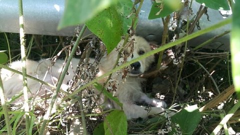 초록이에게 조심스럽게 다가갔을때낮선사람이란 것을 알아챈 아이는멀리 도망가지도 못하고얼마없는 기력으로 주변 풀숲에 숨는게 고작이었습니다.
