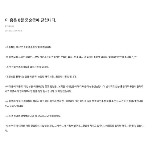 방금 새벽에 올리신 거 같은데 8월 중순에 홈펑하신데..