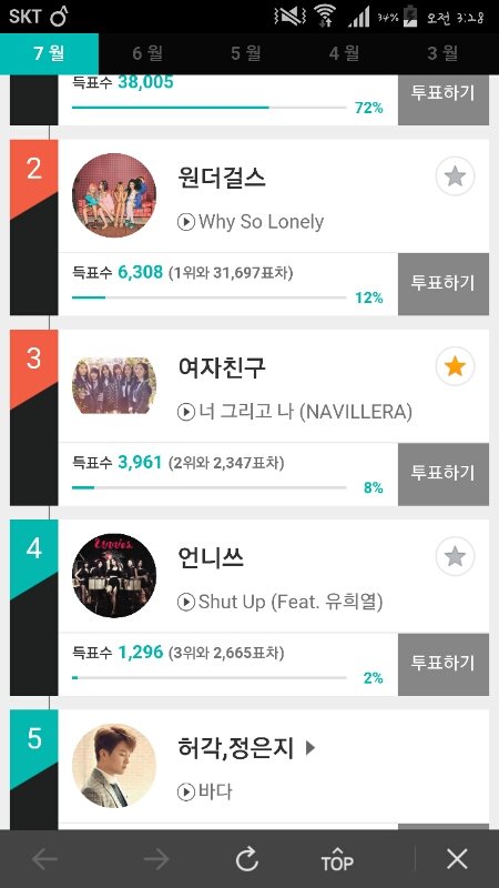 여친투표해줫! 한사람당 하루에 세번 가능해!!