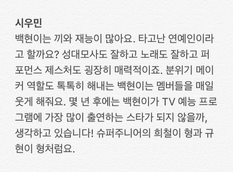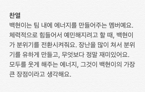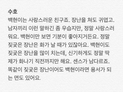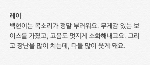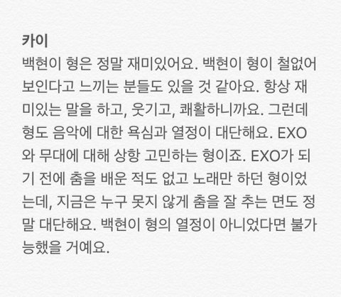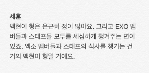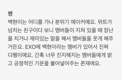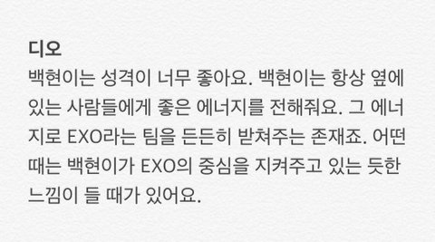 The EXO'luXion화보집 멤버들이 말하는 백현이의 장점