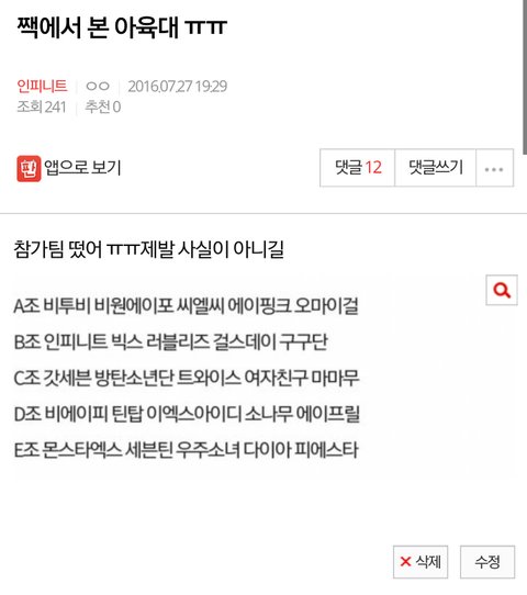아육대 글 쓰닌데