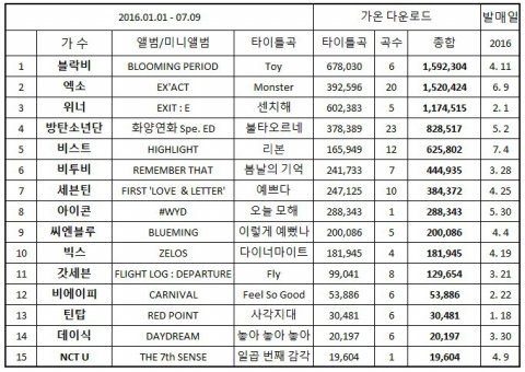 ㅌㅅ에 오른 남돌 다운로드 차트