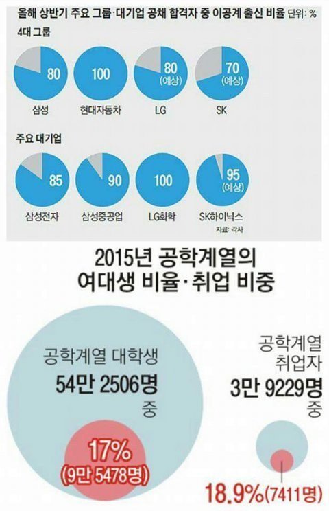 기업에서 공대생 많이 뽑는게 문제가아니라 같은 스펙일때 남자를 뽑는다는게 문제인거야 이런것가지고 문제삼는 여자 아무도 없음