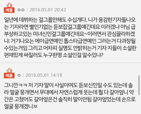 인기와 악플은 비례한다는 말이 있듯이 인기가 많고 많이 뜨니까 그만큼 악플도 많고 이유도 없이 욕먹는다는건 알고 있지만