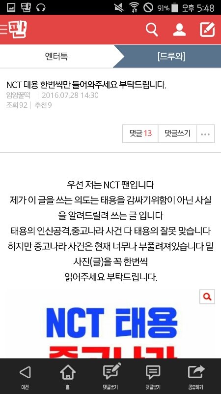 nct 언급되는 글에는 선플만 담