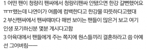 6. 공감능력 떨어짐 1...그래서 팬들한테 실수하고 막대함...