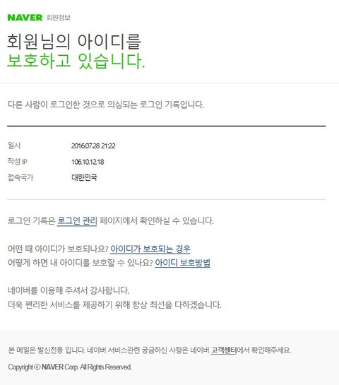 이런 이메일도 함께 와있구요. 부랴부랴 비밀번호 변경하고 로그인 했어요.