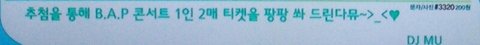 Mn00에서 하는 Daily Music Talk에서 1인 2매를 추첨을 통해서 준다고하네..? 혹시라도 티켓 가격때문에 못가는 사람들은 혹시 모르니까 한번해봐봐
