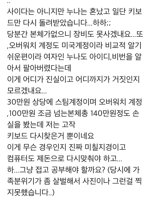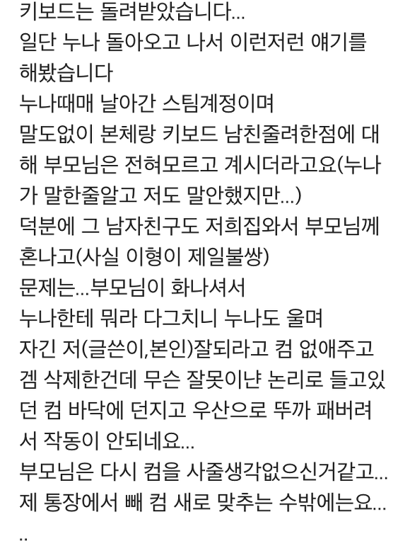 새로 산 키보드 남친에게 준 누나