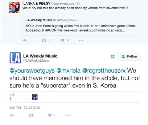 기사에 또 옛날 혼혈 아이돌그룹 ㅅㅋㄹ분들은 썼는데 버논이는 안써줘서 해외 캐럿들이 버논이가 먼저 케이콘에 출연했다고 친절하게 글 남기니까 저따위 식으로 답하네 ㅅㅂ