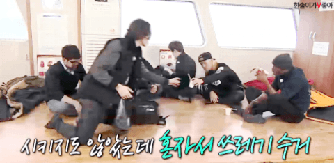 데뷔 전 프로그램나왔을때 가방에서 봉투꺼내서 쓰레기담는 짤..