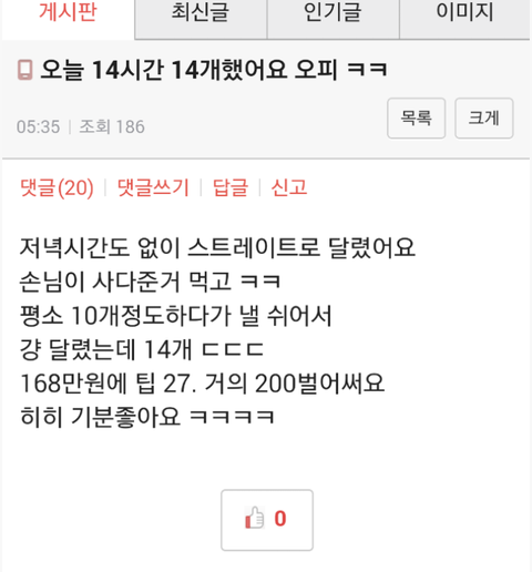 저거 하루 출근안하면 벌금?먹음 생리를 하닌깐 5~7일은 못나가잖아 그러닌깐 벌금내는데 벌금이 아마도 쫌 센가격인걸로 알고 있고 지각하면 지각비도 낸다. 365일 다 출근하는데 생식기는 안 헐겠냐? 그래도 나가야 함. 벌금무닌깐 지금당장은 돈을 많이 버는것 처럼보이지만 나중에 가면 갈수록 빚만쌓이게 된대. 그러니 판녀들은 조심하자!!