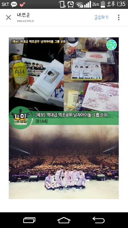 조공갑 4위에 비포가 순위에 올랐어 ㅎㅎㅎㅎ! 그리구 순위는 아니지만 성량 좋은 남아이돌에 산들오빠있고 a형리더에 진영오빠도 있다!! 그리구 복덩이들 생일 축하해XD♥