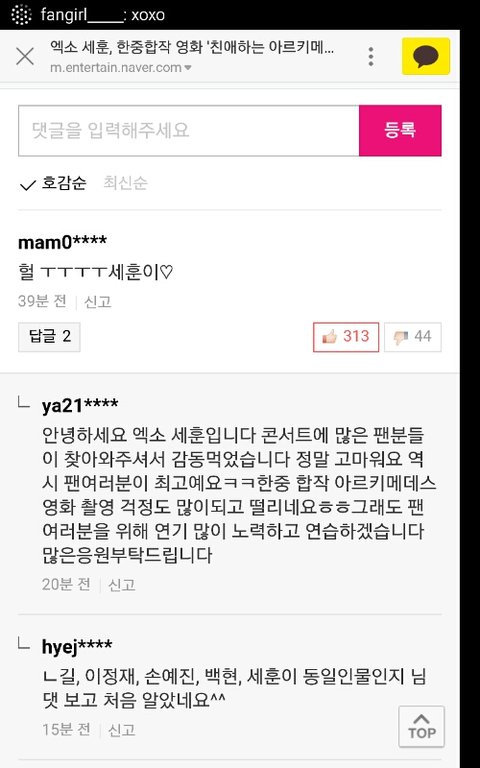 세훈이 기사 갔다왔는데