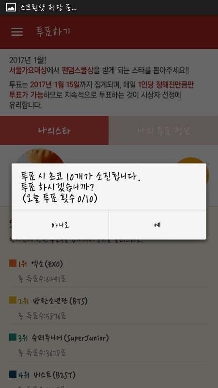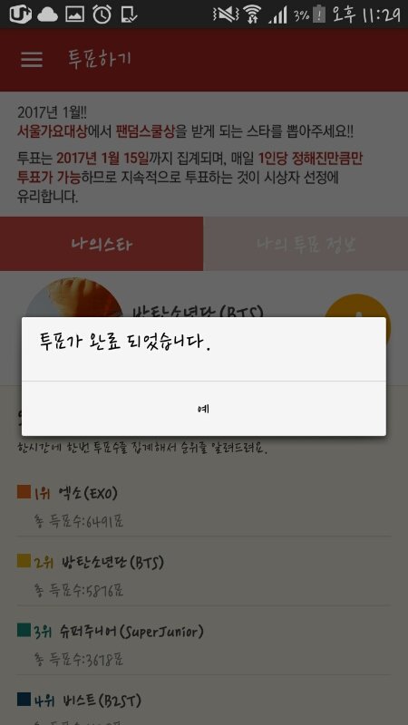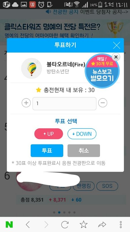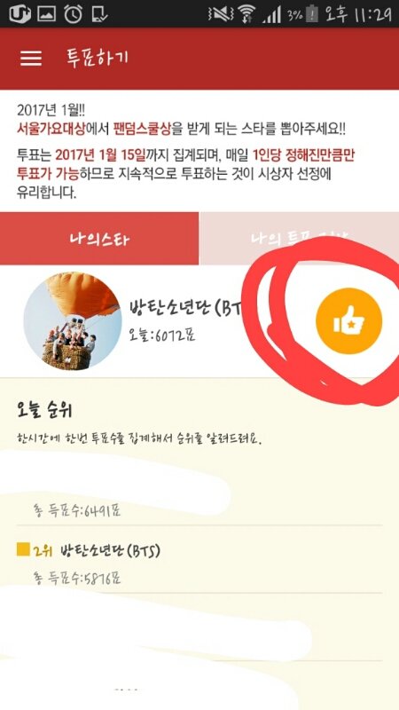 투표 목록에서 방탄 찾아서 투표하기 누르면 끝이야!