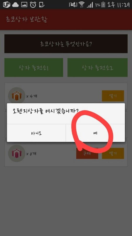 투표하면 끝이야! 초코 모자라고 하면 위에 방법 반복해서 상자 없어질때 까지 투표해주면 돼!