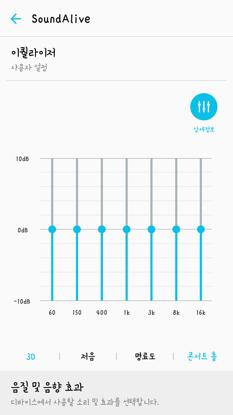 ② 상세설정→ 3D, 콘서트홀 클릭 나머지껀 건드려서
