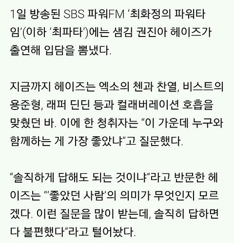헤E즈 엑또랑 콜라보하면서 불편했대