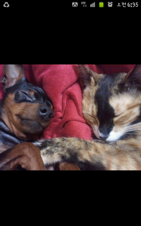 잠잠해서 방에 가봤더니 호두녀석과 저러고 잠이 들었더군요.
