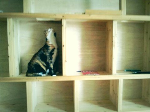 캣타워로는 어림도 없어 책장을 하나 구해다가 눞여서 사이사이.아래위로도 지나다닐수있게 구멍을 뚫어주고 기둥마다 삼줄도 감아서 놀이터를 만들어줬더랬죠.