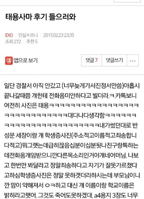 근데 예전에 ㅌㅇㅂㅇ이 사과문 올린게 있거든