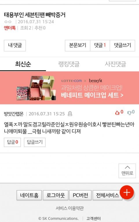 ㅂㅇㄱㄹㅁ 악플 캡쳐한 캐럿 더 없니?