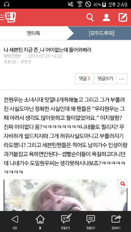 그 글 댓글에 ㅂㅇㄱㄹㅁ이 자기가 캐럿 아니라고 ㅈㄴ욕을 해댐.