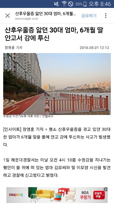 헐!! 베스트 처음해봐요...우왕신기!! 그리고 댓글로 싸우지마세요ㅠㅠ 분명히 우울증때문에 미친짓을 한건 맞지만 그지경이 되기까지 방치했던 주변도 확실히 문제라고봐요ㅠㅠ