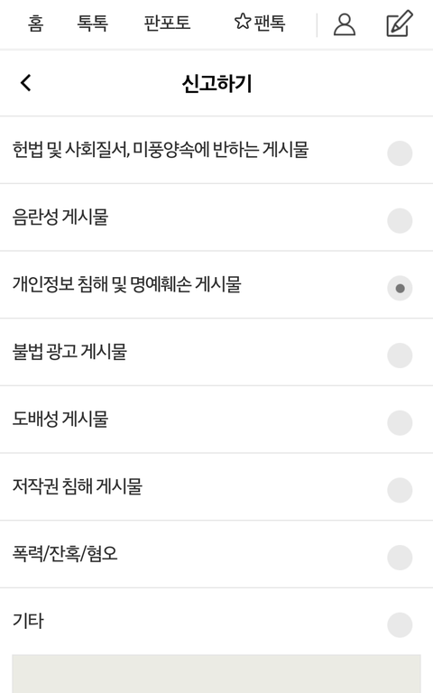 클릭←3번째에있는 개인정보침해및으로 다통일해서 신고 ㄱ 신고창으로 바로가기함 그럼순위내려감