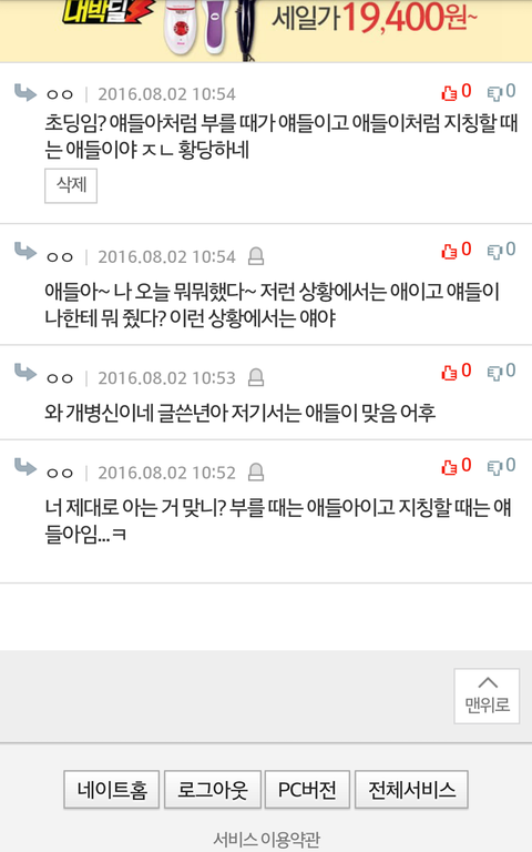 파생글 쓰지마 ㅂㅅ아