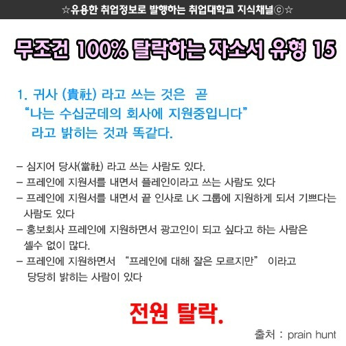 무조건 탈락하는 자소서 유형