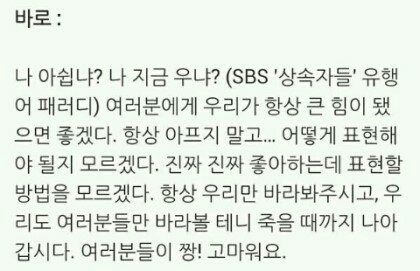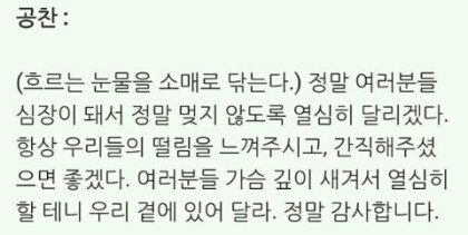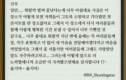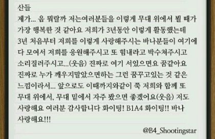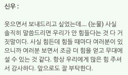 뭐 내가 하고 싶은말은 힘든일도 많았지만 우리 가수랑 복덩이들이 하나가 되서 잘 이겨냈잖아! 그치 ?? 우린 비포 믿고 그냥 어덕행덕♡ 행복하자