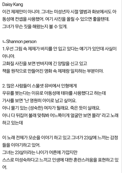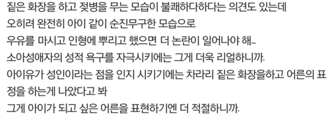 이걸 가지고 일일이 로리타 컨셉이라며 비판하는 건 무의미합니다.이건 아이유의 앨범 자켓도 아니고
