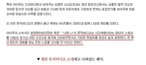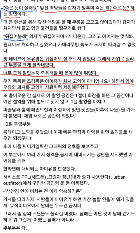 아이유는 총괄 프로듀서이나 뮤비 기획에는 아무런 참여를 하지 않고 감독의 지시에 따라 연기했음을 알려주는 인터뷰 자료입니다. 스물셋이 로리타를 내포하고 있진 않지만 개개인에 따라 내포한다고 생각하더라도 욕을 먹어야 할 것은 아이유가 아니란 것.