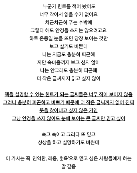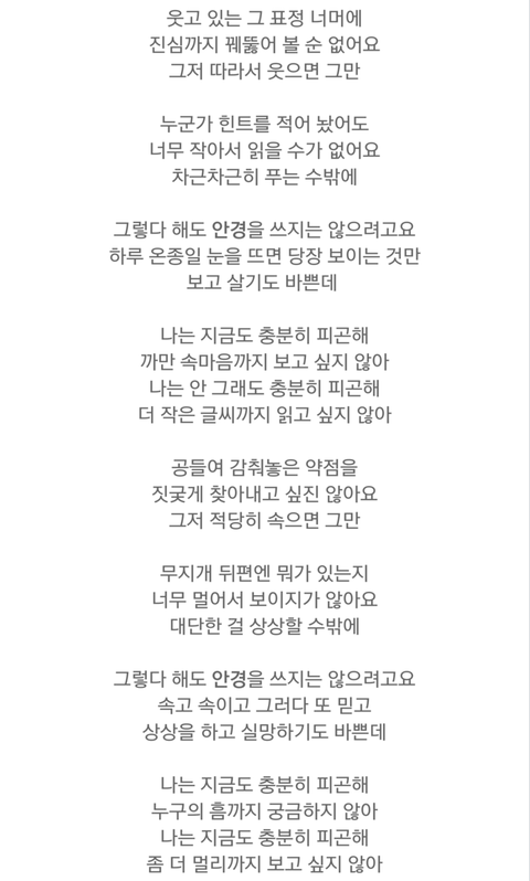 이런 식으로 해석하면 '안경'의 가사와 너무 잘 맞아떨어집니다.
