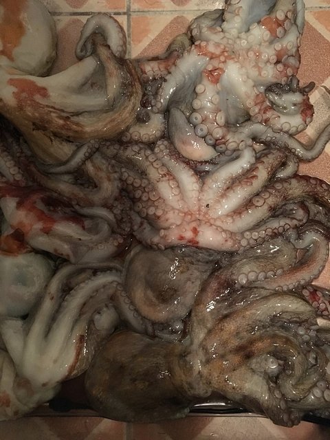저녁에 제주바당에 잠깐 나가서 잡아온 문어